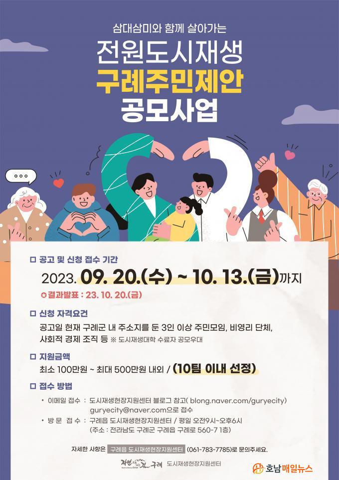 »ï´ë»ï¹Ì µµ½ÃÀç»ý ÁֹΠÁ¦¾È °ø¸ð»ç¾÷°ú °ü·ÃÇÑ ÀÚ¼¼ÇÑ »çÇ×Àº ³×À̹ö ºí·Î±×(https://blog.naver.com/guryecity)¸¦ Âü°íÇϰųª, ±¸·ÊÀ¾ µµ½ÃÀç»ýÇöÀåÁö¿ø¼¾ÅÍ(061-783-7785)·Î ¹®ÀÇÇÏ¸é µÈ´Ù.