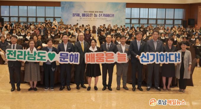 ƯÈ÷ ¡®¹®ÇØ, ¹è¿òÀº ´Ã ½Å±âÇÏ´Ù!¡¯¸¦ ÁÖÁ¦·Î ¿ÃÇØ ±³À°ºÎ¿¡¼ ÁÖÃÖÇÑ Á¦12ȸ Àü±¹ ¼ºÀι®Çر³À° ½ÃÈÀü¿¡¼ ±³À°ºÎÀå°ü»óÀ» ¼ö»óÇÑ ¼Û´öÈ(82¡¤¸ñÆ÷) ´ÔÀ» ºñ·ÔÇØ ±¹È¸±³À°À§¿øÀå»ó, ±¹°¡Æò»ý±³À°ÁøÈï¿øÀå»ó, Àü³²µµÁö»ç»ó, Àü³²µµÀÇȸÀÇÀå»ó, Àü³²µµ±³À°°¨»ó µî 44¸íÀ» ½Ã»óÇß´Ù.