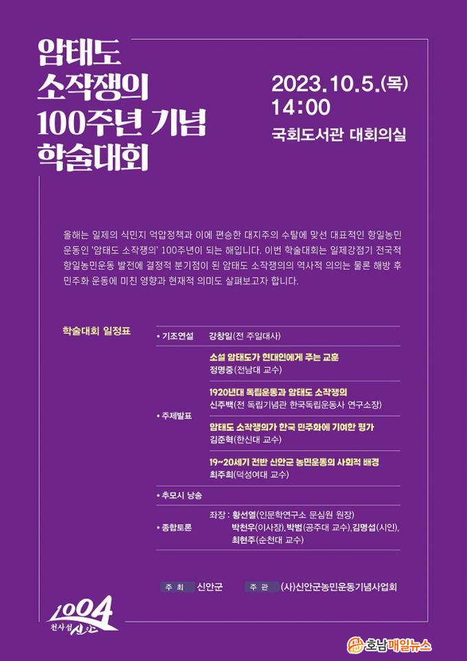 ½Å¾È±º ¹Ú¿ì·® ±º¼ö´Â ¡°1923³â ÀÏÁ¦ ½Ä¹ÎÁö ¼öÅ»°ú Ä£ÀÏ ÁöÁÖ¿¡ ¸Â¼ ½Â¸®¸¦ °ÅµÐ ¾Ïŵµ ¼ÒÀÛÀïÀÇ´Â °áÄÚ Àؾ ¾È µÉ ´ëÇѹα¹ÀÇ ¿ª»çÀÌ¸ç ³ó¹ÎÀÇ ±â·ÏÀÌ´Ù.¡±¶ó¸ç ¡°10¿ù 5ÀÏ, ±¹È¸µµ¼°ü¿¡¼ ¿¸®´Â ¾Ïŵµ ¼ÒÀÛÀïÀÇ 100Áֳ⠱â³ä Çмú´ëȸ¿¡ ¸¹Àº °ü½É°ú Âü¿© ºÎʵ台´Ù.¡±¶ó°í ¸»Çß´Ù.