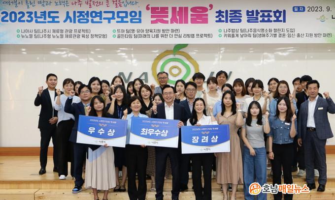 ³ªÁÖ½Ã(½ÃÀå À±º´ÅÂ)´Â ÃÖ±Ù ½Ãû»ç ´ëȸÀǽǿ¡¼ ½ÃÁ¤¿¬±¸¸ðÀÓ¡®¶æ¼¼¿ò¡¯ ÃÖÁ¾ ¹ßǥȸ¸¦ °¡Á³´Ù°í 27ÀÏ ¹àÇû´Ù. ½É»ç °á°ú ¡®¹Ì·¡ÀÇ ³ª¸¦ À§ÇÑ ´õ+¾È½É ¸®ºù·¦ ÇÁ·ÎÁ§Æ®¡¯(Á¦¸ñ)¸¦ ¹ßÇ¥ÇÑ ¡®°ñµçŸÀÓ¡¯ ÆÀÀÌ ÃÖ¿ì¼ö»óÀÇ ¿µ¿¹¸¦ °Å¸ÓÁã¸ç ½Ã»ó±Ý 1000¸¸¿øÀ» ȹµæÇß´Ù.