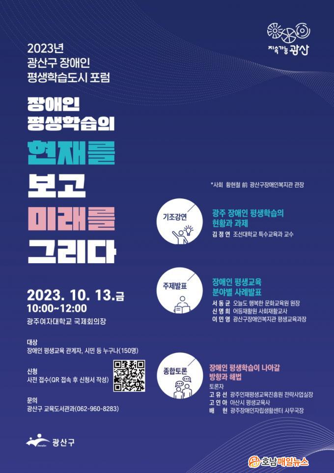 Æ÷·³Àº Á¶¼±´ëÇб³ Ư¼ö±³À°°ú ±èÁ¤¿¬ ±³¼öÀÇ ¡®±¤ÁÖ Àå¾ÖÀÎ Æò»ýÇнÀ ÇöȲ°ú °úÁ¦¡¯ ±âÁ¶ °¿¬À» ½ÃÀÛÀ¸·Î Àå¾ÖÀÎ Æò»ý±³À° »ç·Ê ÁÖÁ¦ ¹ßÇ¥¿Í ±¤»ê±¸ Àå¾ÖÀÎ Æò»ýÇнÀÀÌ ³ª¾Æ°¥ ¹æÇâ°ú ÇØ¹ý ¸ð»öÀ» À§ÇÑ Àü¹®°¡µéÀÇ Á¾ÇÕÅä·Ð, ÁúÀÇÀÀ´ä ¼øÀ¸·Î ÁøÇàµÈ´Ù.