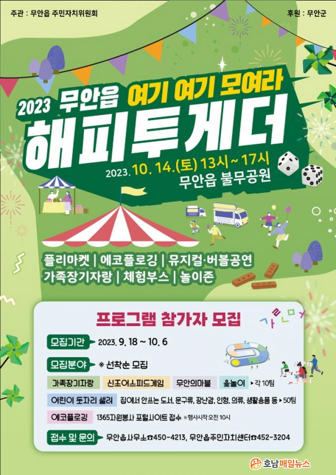 ¹«¾ÈÀ¾ ÁÖ¹ÎÀÚÄ¡À§¿øÈ¸ ÁÖ°üÀ¸·Î °³ÃֵǴ À̹ø Çà»ç´Â ½Å±¸ ¼¼´ë°£ ¼·ÎÀÇ ¹®È¸¦ üÇèÇÏ¸é¼ ÀÌÇØÇÒ ¼ö ÀÖµµ·Ï ¼ÒÅëÀÇ ÀåÀ» ¸¶·ÃÇÏ°í ´õºÒ¾î »ì¾Æ°¡´Â Áö¿ª °øµ¿Ã¼ ¹®È¸¦ Çü¼ºÇϱâ À§ÇÑ ¸ñÀûÀ¸·Î ±âȹµÇ¾úÀ¸¸ç ¿¡ÄÚÇ÷αë, ¾î¸°ÀÌ µ¾ÀÚ¸® Çø®¸¶ÄÏ, °¡Á·Àå±âÀÚ¶û, ¹«¾ÈÀÇ ¸¶ºí°ÔÀÓ, ½ÅÁ¶¾î ½ºÇǵå°ÔÀÓµî ´Ù¾çÇÑ ÁÖ¹ÎÂü¿©Çü ÇÁ·Î±×·¥À¸·Î ÁøÇàµÈ´Ù.