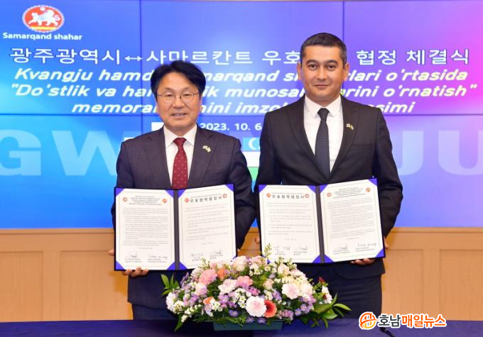 °±âÁ¤ ±¤ÁÖ½ÃÀåÀº ¡°±¤ÁÖ°¡ Áß¾Ó¾Æ½Ã¾Æ¿Í Ã³À½À¸·Î ¿ìÈ£µµ½Ã Çù·ÂÀ» ¸ÎÀº ¿ª»çÀûÀÎ ³¯ÀÌ´Ù¡±¸ç ¡°±¤ÁÖ °í·ÁÀθ¶À»¿¡ »ç´Â °í·ÁÀÎ Àý¹Ý °¡·®ÀÌ ¿ìÁ¿¡¼ ¿Â ¸¸Å ±¤ÁÖ¿Í ¿ìÁÀÇ Àο¬Àº ¿À·¡µÆ´Ù. ¿À·£ Àο¬À» ¹ÙÅÁÀ¸·Î ÀÚµ¿Â÷ »ê¾÷À̶ó´Â °øÅëÁ¡ÀÌ ÀÖ´Â ±¤ÁÖ¿Í »ç¸¶¸£ÄÆ®´Â °æÁ¦¡¤¹®È¡¤±³À° µî ´Ù¹æ¸é¿¡¼ »õ·Î¿î ±³·ùÇù·ÂÀ» È®´ëÇϰڴ١±°í ¹àÇû´Ù.