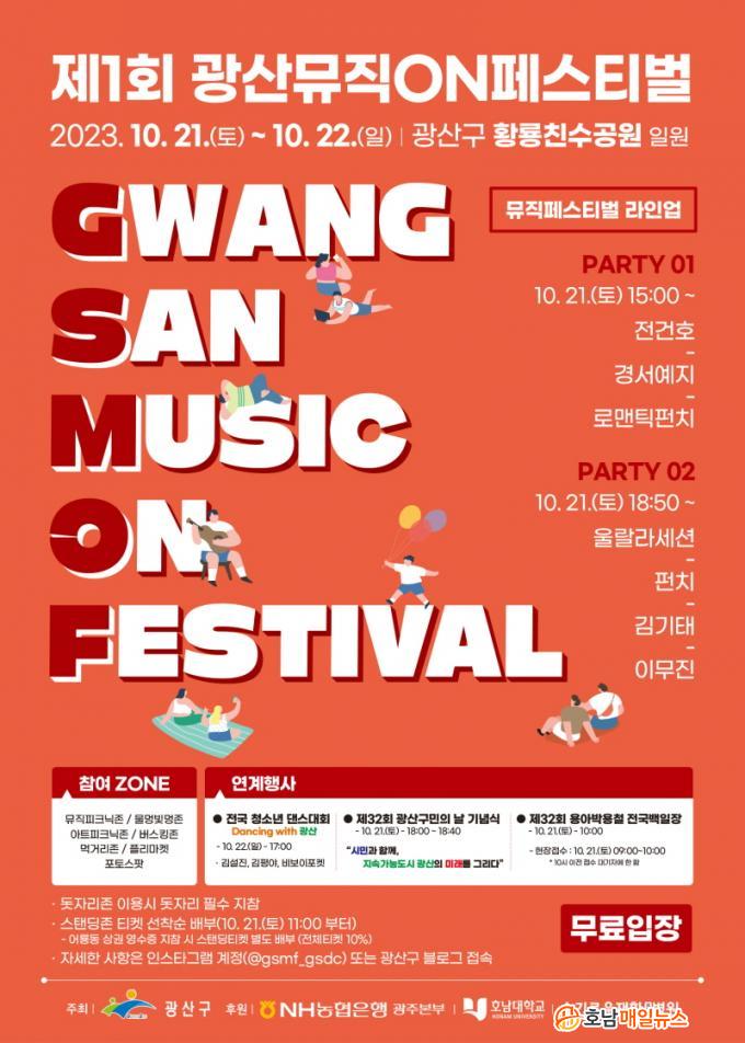 ¿ì¼± ¡®»ýµ¿°¨ ÀÖ´Â µµ½Ã, Áö¼Ó°¡´ÉÇÑ ±¤»ê¡¯À» ´ëÇ¥ÇÒ ÃàÁ¦ Á¦1ȸ ¡®±¤»ê¹ÂÁ÷¿Â(ON)Æä½ºÆ¼¹ú¡¯ÀÌ 21ÀϺÎÅÍ 22ÀϱîÁö ÀÌÆ²°£ Ȳ·æÄ£¼ö°ø¿ø¿¡¼ ¿¸°´Ù. ½Ã¹Î °ø¸ð¸¦ ÅëÇØ ¼±Á¤ÇÑ ¡®Èú¸µ ÇÏÀÌ, Çʸµ ÇÏÀÌ(Healing Hi, Feeling High!)¡¯¸¦ ±¸È£·Î ÀÚ¿¬, »ç¶÷, ÈÞ½Ä ±×¸®°í À½¾ÇÀÌ ÇÔ²²ÇÏ´Â ÃàÁ¦¸¦ ¼±º¸ÀδÙ.