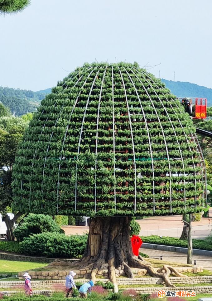 ÇÔÆò±ºÀº 11ÀÏ ¡°¿À´Â 20ÀÏ °³¸·ÇÏ´Â 2023 ´ëÇѹα¹ ±¹Çâ´ëÀüÀ» ¾ÕµÎ°í ¿¢½ºÆ÷°ø¿ø ÁÖÁ¦°ü ¾Õ¿¡ Áö¸§ 10m, ³ôÀÌ 14m ±Ô¸ðÀÇ ²Þ³ª¹«, Èñ¸Á³ª¹« Á¶Çü¹° 2°³¿¡ ²ÉžÀ» Á¶¼ºÇß´Ù¡±°í ¹àÇû´Ù.