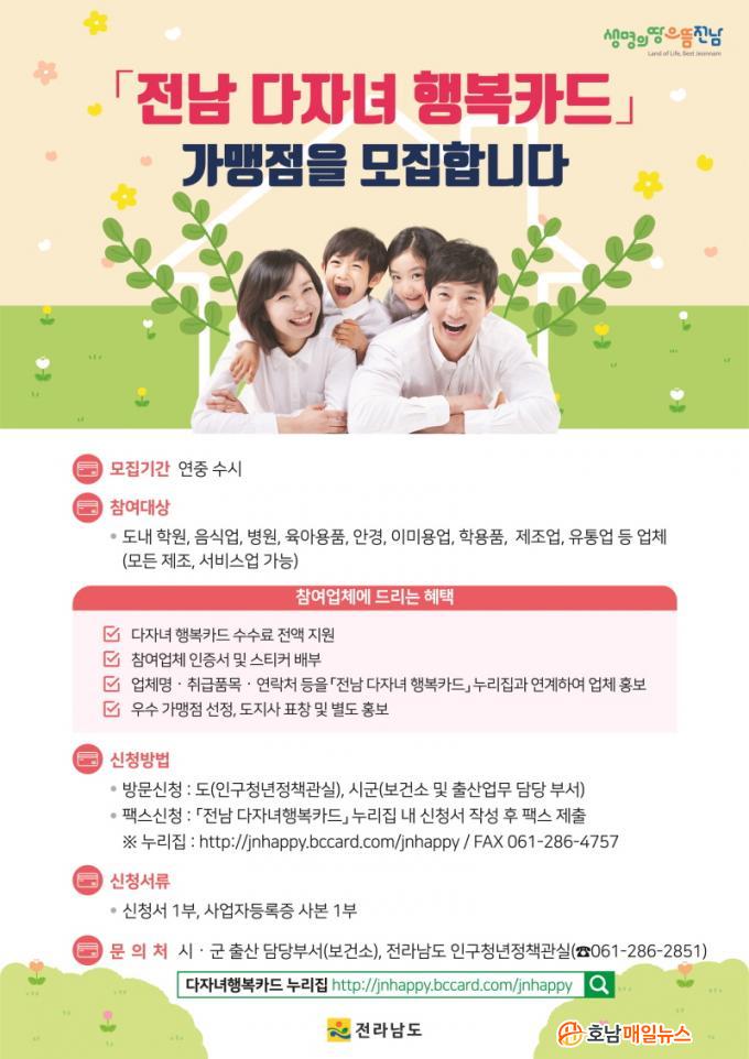 ¡®Àü³² ´ÙÀÚ³à Çູīµå¡¯ ¹ß±Þ ´ë»óÀÚ´Â µµ³»¿¡ ÁÖ¼Ò¸¦ µÐ ¸¸ 13¼¼ ÀÌÇÏ 2ÀÚ³à ÀÌ»ó(ÅÂ¾Æ Æ÷ÇÔ)ÀÎ ´ÙÀÚ³à °¡Á¤ÀÌ´Ù. Ä«µå ¹ß±ÞÀ» ¿øÇÏ´Â ±º¹ÎÀº °¡±î¿î ³óÇùÀ» ¹æ¹®Çؼ ½ÅûÇÏ¸é µÈ´Ù.