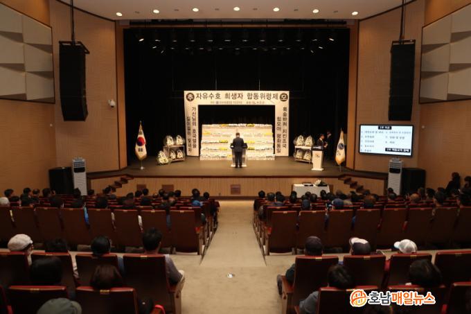 ÀÚÀ¯¼öÈ£ Èñ»ýÀÚ ÇÕµ¿À§·ÉÁ¦´Â Çѱ¹ÀüÀï ´ç½Ã ºÏÇѱºÀÌ Åð°¢ÇÏ¸é¼ ÇØÁ¦¸é õÀ帮 ÁֹΠ148¸íÀ» Áý´ÜÀ¸·Î ÇлìÇϰí Àα٠¹Ù´Ù¿¡ ¼öÀå½ÃŲ »ç°ÇÀ¸·Î ¾ï¿ïÇÏ°Ô Èñ»ýµÈ ÁֹεéÀÇ ³ÌÀ» À§·ÎÇϰí Ã߸ðÇϱâ À§ÇØ Áö³ 1985³âºÎÅÍ °ÅÇàÇØ ¿À°í ÀÖ´Ù.