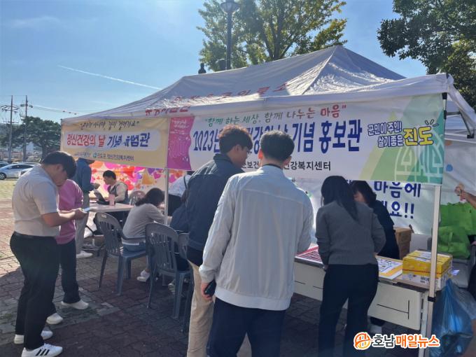 Áø¾È±ºÀº Á¤½Å°Ç°¿¡ ´ëÇÑ °ü½É Á¦°í¿Í Àνݳ¼±À» À§ÇØ Áö³ 11ÀÏ(¼ö)ºÎÅÍ 13ÀÏ(±Ý)±îÁö ³ëÀκ¹Áö°ü, Áøµµ±ºÃ» ¹Î¿ø½Ç ¾Õ, ³ó¾÷±â¼ú¼¾ÅÍ¿¡ ±â³ä È«º¸°üÀ» ¼³Ä¡‧¿î¿µÇß´Ù. È«º¸°üÀº ¿È´ÏÇÍÀ» ÀÌ¿ëÇÑ ³úÆÄ°Ë»ç, ½ºÆ®·¹½º °Ë»ç¿Í ÇÔ²² ²Î¾ø´Â »Ì±â µîÀÇ Àç¹ÌÀִ üÇèµµ ÇÔ²² ½Ç½ÃÇØ Áøµµ±º¹ÎÀÇ À¯ÄèÇÑ ¸¶À½°Ç° ÁõÁøÀ» µµ¸ðÇß´Ù.
