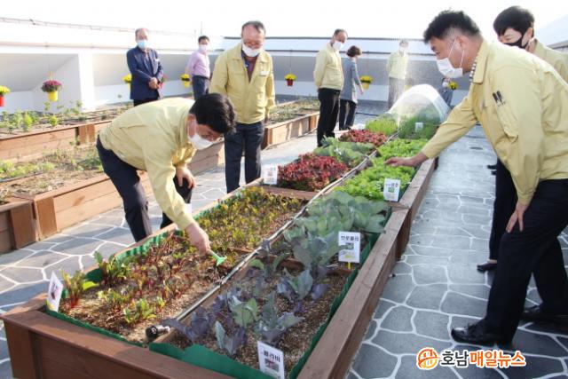 ³ªÁÖ½Ã(½ÃÀå °ÀαÔ)´Â 12ÀÏ µµ½Ã³ó¾÷°ø°£ Á¶¼º»ç¾÷ÀÇ ÀÏȯÀ¸·Î ³ó¾÷±â¼ú¼¾ÅÍ 3Ãþ ¿Á»ó¿¡ Á¶¼ºÇÑ ¹çÁ¤¿ø ¡®²É±¸¸§¡¯ °³Àå½ÄÀ» °¡Á³´Ù°í 13ÀÏ ¹àÇû´Ù.