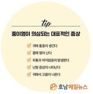 ÁßÀÌ¿°Àº °í¸· ¾ÈÂÊ Á¡¸·ÀÇ ¿°Áõ ¶§¹®¿¡ °í¸·ÀÌ ºÓ°Ô º¸À̰í ÅëÁõ°ú ¿À» ¼ö¹ÝÇÑ ±Þ¼º ÁßÀÌ¿°, ÁßÀÌ Á¡¸·ÀÇ ¿°ÁõÀ¸·Î ÀÎÇÑ ¾×ü°¡ ä¿öÁ® ¼ö¿µÇÏ´Ù ±Í¿¡ ¹°µé¾î°¬À» ¶§Ã³·³ ¸Ô¸ÔÇÏ°Ô µé¸®´Â »ïÃ⼺ ÁßÀÌ¿° ±×¸®°í °í¸·¿¡ ±¸¸ÛÀÌ ³ª°í ´©·± °í¸§ÀÌ Èê·¯³ª¿À¸ç û·ÂÀÌ ¶³¾îÁö´Â ¸¸¼ºÁßÀÌ¿° µîÀ¸·Î ±¸º°ÇÒ ¼ö ÀÖ´Ù.