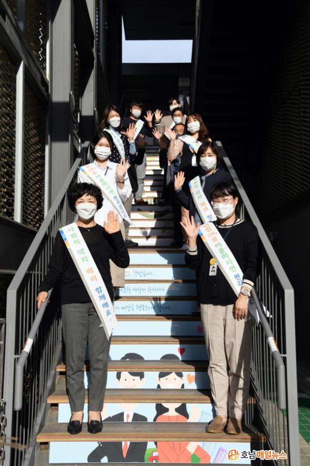 À̹ø¿¡ Á¶¼ºÇÑ Ä£Àý‧½º¸¶ÀÏ °è´ÜÀº 3°¡Áö Å׸¶¿¡ µû¶ó °¢°¢ ´Þ¸® ¼³°èµÆ´Ù. ¿ì¼± º°°üµ¿ Á¾Çչοø½Ç ÃâÀÔ±¸ 1Ãþ¿¡¼ºÎÅÍ 2Ãþ±îÁö °è´Ü¿¡´Â Ä£Àý°ú ½º¸¶ÀÏÀ» ÁÖÁ¦·Î ´ã¾Ò´Ù.
