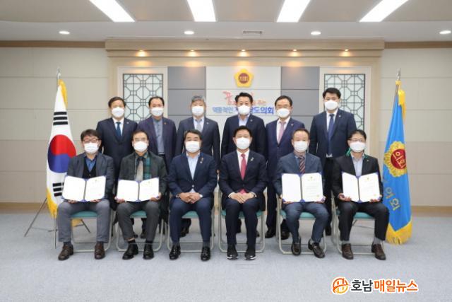 À̳¯ ÃÖ¹«°æ À§¿øÀåÀº ±èÇÑÁ¾ Àü³²µµÀÇȸ ÀÇÀåÀ» ºñ·ÔÇÑ »óÀÓÀ§ À§¿ø µîÀÌ Âü¼®ÇÑ °¡¿îµ¥ ¾ÈÀü°Ç¼³¼Ò¹æºÐ¾ß ÀÇÁ¤ÀÚ¹®À§¿ø 5¸í¿¡ ´ëÇØ À§ÃËÀåÀ» ¼ö¿©ÇÏ°í ¾ÕÀ¸·Î ¿î¿µ¹æÇâÀ» ³íÀÇÇß´Ù.