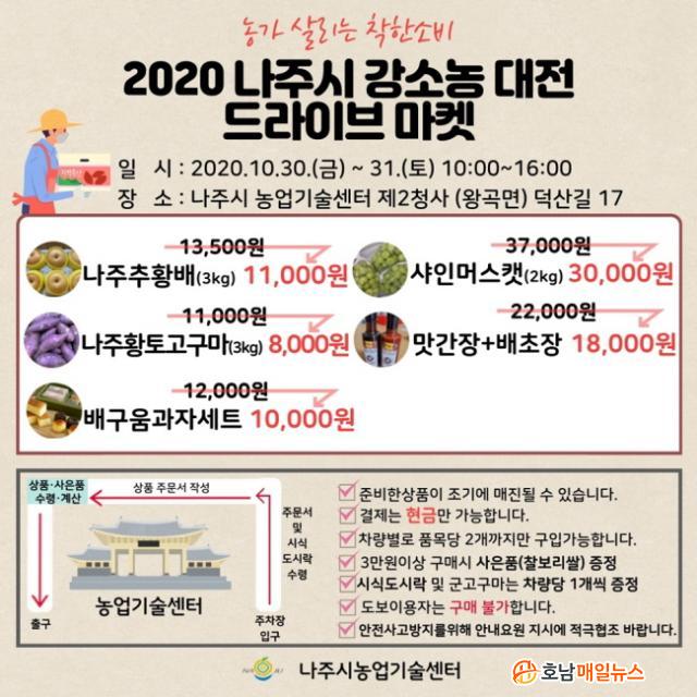 ³ªÁÖ½Ã(½ÃÀå °ÀαÔ)´Â ¿À´Â 30ÀϺÎÅÍ 31ÀϱîÁö ¾çÀÏ °£ 10½ÃºÎÅÍ 16½Ã±îÁö ³ó¾÷±â¼ú¼¾ÅÍ ÁÖÂ÷Àå¿¡¼ Áö¿ª ³ó»ê¹° ÆÇ¸Å Ȱ¼ºÈ¸¦ À§ÇÑ ¡®µå¶óÀÌºê ¸¶ÄÏ¡¯À» ¿î¿µÇÑ´Ù°í 27ÀÏ ¹àÇû´Ù.