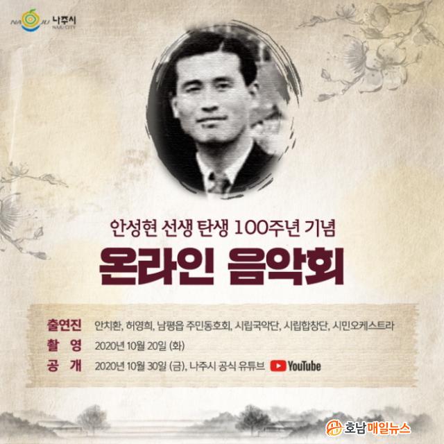 ³ªÁÖ½Ã(½ÃÀå °ÀαÔ)´Â ¿À´Â 30ÀÏ Á¦26ȸ ³ªÁֽùÎÀÇ ³¯°ú ¿¬°èÇØ ³ªÁֽà °ø½Ä À¯Æ©ºê ä³Î¿¡¼ ¡®¾È¼ºÇö ¼±»ý ź»ý 100Áֳ⠱â³ä À½¾Çȸ¡¯¸¦ ¹æ¿µÇÒ ¿¹Á¤À̶ó°í 28ÀÏ ¹àÇû´Ù.