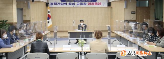 Àå¼®¿õ ±³À°°¨Àº À̳¯ Áøµµ±³À°Áö¿øÃ»¿¡¼ Çкθð 16¸íÀ» ¸¸³ª ¼¶ Áö¿ª ±³À°¿¡ ´ëÇÑ ÇöÀåÀÇ ¸ñ¼Ò¸®¸¦ µé¾ú´Ù.