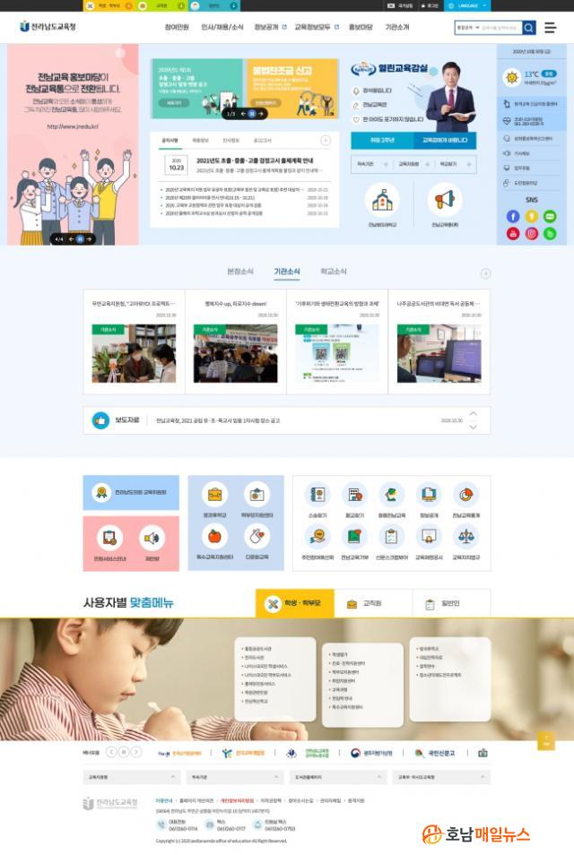 ÀÌ¿¡ µû¶ó ¡®Àü¶ó³²µµ±³À°Ã» ¸ÞÀΠȨÆäÀÌÁö¡¯¿Í ¡®±³À°Á¤º¸¸ðµÎ ȨÆäÀÌÁö¡¯, ¡®Á¤º¸°ø°³ ȨÆäÀÌÁö¡¯°¡ º°µµ·Î ¿î¿µµÈ´Ù.