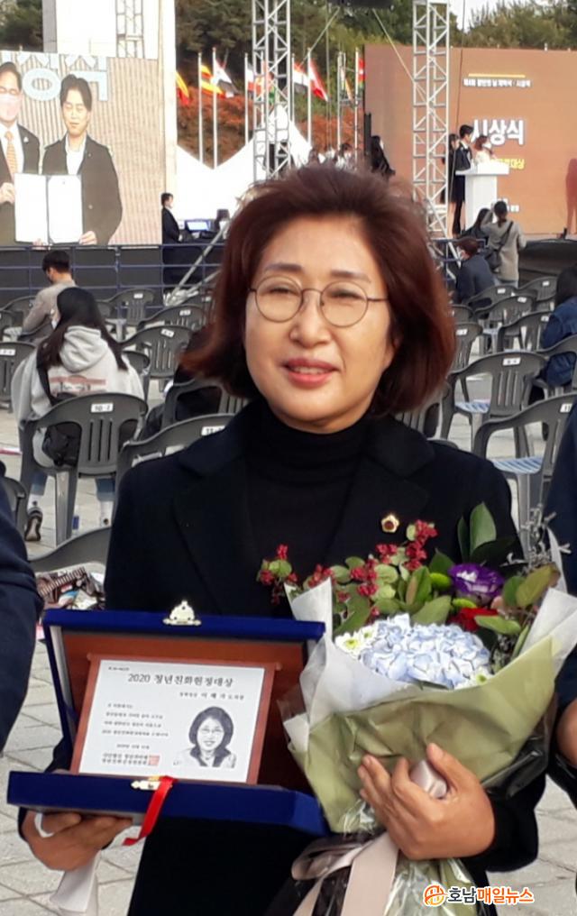 ÇÑÆí, ÀÌÇýÀÚ ÀÇ¿øÀº Àü³²µµÀÇȸ Á¦11´ë Àü¹Ý±â ±âȹÇàÁ¤À§¿øÈ¸ À§¿øÀå, ÈĹݱ⠱³À°À§¿øÈ¸ ¼Ò¼Ó À§¿øÀ¸·Î¼ ±³À°°ü·Ã Á¶·Ê´Â ¹°·Ð û³â ¹× ÀÎÀçÀ°¼º °ü·Ã Á¶·Ê¸¦ ¹ßÀÇÇÏ´Â µî Àû±ØÀûÀÎ ÀÔ¹ý Ȱµ¿À» Àü°³ÇÏ°í µµ¹ÎÀ» À§ÇÏ¿© ´Ù¾çÇÑ ÀÇÁ¤È°µ¿À» ÆîÄ£ Á¡À» ³ôÀÌ Æò°¡¹Þ¾Æ ¼ö»óÀÇ ¿µ¿¹¸¦ ¾È°Ô µÆ´Ù.