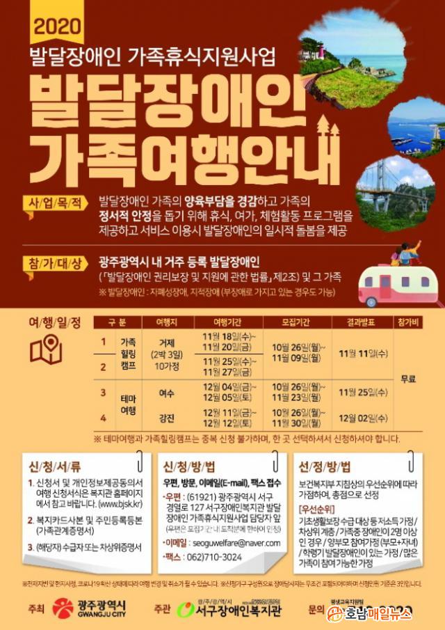 º» »ç¾÷Àº ¹ß´ÞÀå¾ÖÀÎ °¡Á·¿¡°Ô ÈÞ½ÄÀ» Á¦°øÇÏ¿© ¾çÀ°ºÎ´ãÀ» °æ°¨Çϰí Á¤¼Àû ¾ÈÁ¤À» µ½±â À§ÇÑ »ç¾÷À¸·Î °¡Á·Èú¸µÄ·ÇÁ¿Í Å׸¶¿©ÇàÀ¸·Î ³ª´µ¾î ÁøÇàµÇ¸ç °¡Á·Èú¸µÄ·ÇÁ´Â °ÅÁ¦¸¦ ¹è°æÀ¸·Î °ü±¤¸í¼Ò °ü¶÷ ¹× üÇè Ȱµ¿À» ÁøÇàÇÏ°í ¹ß´ÞÀå¾ÖÀΰú °¡Á·µé °³º° ÇÁ·Î±×·¥À» Á¦°øÇÔÀ¸·Î½á °¡Á· Èú¸µ ¿©ÇàÀ» Áö¿øÇϰí 1Â÷(11/18~11/20)¿Í 2Â÷(11/25~11/27)·Î µÎ Â÷·Ê ÁøÇàµÇ¸ç °¢°¢ 10°¡Á¤¾¿ Âü¿©ÇÏ¿© ÁøÇàµÈ´Ù.