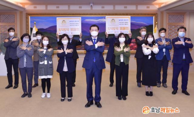 ÇÑÆí, À̿뼷 ½ÃÀåÀº À̹ø Ä·ÆäÀο¡ Âü¿©Çϸ硰Äڷγª19·Î ÁöÄ¡°í Èûµç ÀÏ»óÀ» º¸³»°í ÀÖ´Â ±¤Áֽùε鿡°Ô À§·Î¿Í °Ý·Á¸¦ º¸³»°í ½Í¾î Ä·ÆäÀο¡ Âü¿©Çß´Ù¸ç, ½º½º·Î¸¦ ¾È¾ÆÁÖ°í ´Ùµ¶ÀÌ´Â ¡®Åä´ÚÅä´Ú¡¯ Ä·ÆäÀÎÀ» ÅëÇØ ±¤Áֽùε鲲¼ °Ç°Çϰí Ȱ±âÂù »ýȰÀ» À̾±æ ¹Ù¶õ´Ù¡±°í ¸»Çß´Ù.