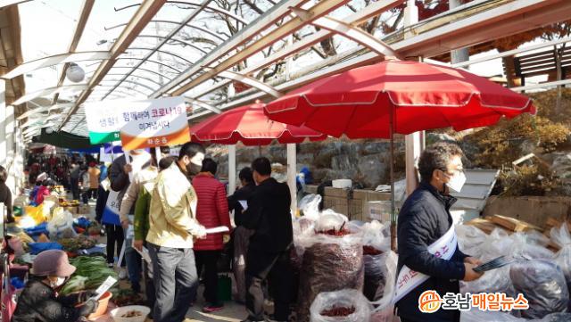 À̳¯ ȼøÀ¾ÀåÀ» ºñ·ÔÇÑ È¼øÀ¾ Á÷¿ø 30¿© ¸íÀº Áֹε鿡°Ô ÀÏȸ¿ë ¸¶½ºÅ©¸¦ ¹èºÎÇß´Ù. Äڷγª19 È®»ê Â÷´ÜÀ» À§ÇÑ ÇàÁ¤¸í·É¿¡ µû¶ó ¸¶½ºÅ© Âø¿ëÀÌ Àǹ«ÀÓÀ» °Á¶ÇÏ¸ç ´ÙÁßÀÌ¿ë½Ã¼³¿¡¼ ¸¶½ºÅ©¸¦ Ç×»ó Âø¿ëÇÒ °ÍÀ» Àû±ØÀûÀ¸·Î È«º¸Çß´Ù.