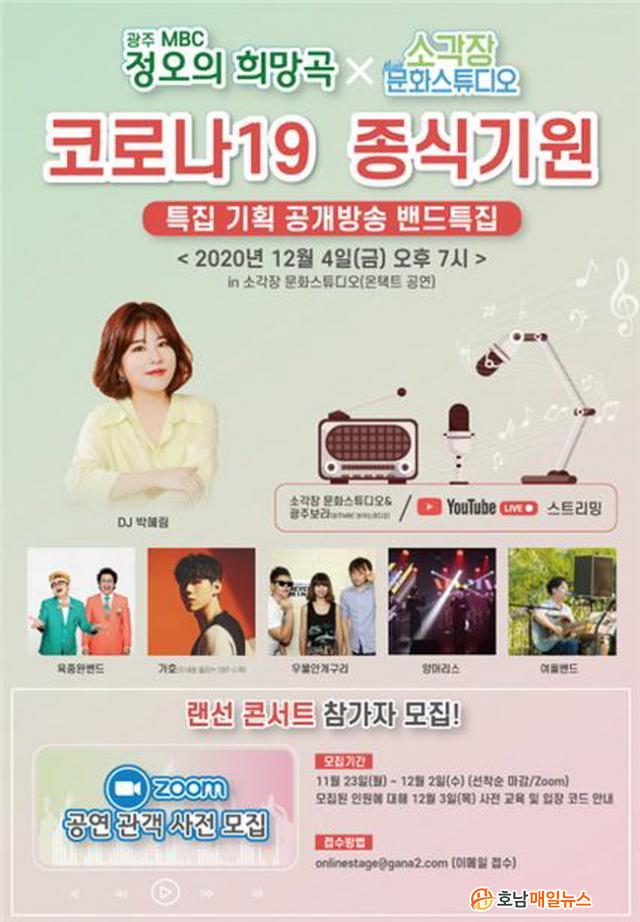 °ø¿¬Àº À¯Æ©ºê °ø½Ä ä³ÎÀÎ ¡®¼Ò°¢À幮ȽºÆ©µð¿À¡¯¿Í ¡®±¤ÁÖº¸¶ó(±¤ÁÖMBCº¸ÀÌ´Â ¶óµð¿À)¡¯ ä³ÎÀ» ÅëÇØ ½Ç½Ã°£ ½ºÆ®¸®¹Ö µÇ¸ç ³ìÈµÈ À½¿øÀº ±¤ÁÖMBC ¡®Á¤¿ÀÀÇ Èñ¸Á°î¡¯ ½Ã°£¿¡ Áö»óÆÄ ¶óµð¿À¸¦ ÅëÇØ ¹æ¼ÛµÈ´Ù.
