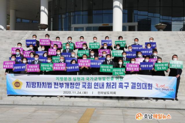 ÀÌ ³¯ Çà»ç¸¦ ÁøÇàÇÑ Àü°æ¼± ¿î¿µÀ§¿øÀåÀº ¡°Áö¹æÀÚÄ¡¹ý ÀüºÎ°³Á¤¾ÈÀÌ ¿©ÀüÈ÷ ±¹È¸ ÇàÁ¤¾ÈÀüÀ§¿øÈ¸ ¹ý¾È½É»ç¼ÒÀ§¿øÈ¸ Á¶Â÷ Åë°úÇÏÁö ¸øÇϰí ÀÖ´Ù¡±¸é¼ ¡°¿ÃÇØ¸¸ÅÀº ¹Ýµå½Ã Áö¹æºÐ±Ç ½ÇÇöÀ» À§ÇÑ Àü³²µµ¹ÎÀÇ ¿°¿øÀ» ´ãÀº ÀÇÁö¸¦ ±¹È¸¿¡ Àü´ÞÇϰíÀÚ ÀÌ ÀÚ¸®¸¦ ¸¶·ÃÇß´Ù¡±°í °áÀÇ´ëȸÀÇ ÃëÁö¸¦ ¼³¸íÇß´Ù.