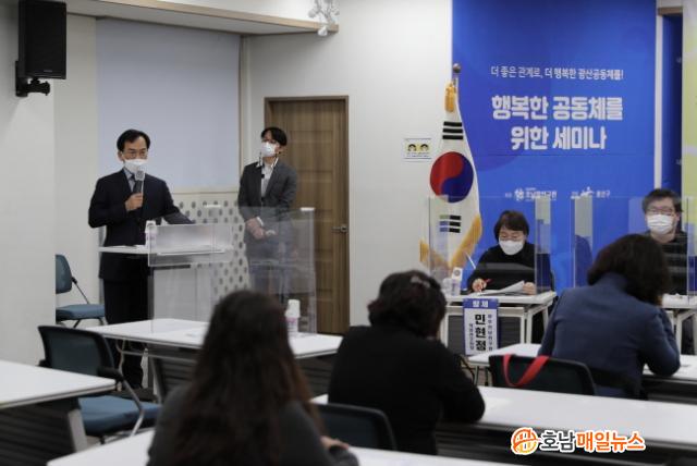 ¡®´õ ÁÁÀº °ü°è·Î, ´õ ÇູÇÑ ±¤»ê°øµ¿Ã¼¸¦¡¯À» ÁÖÁ¦·Î ¿Â․¿ÀÇÁ¶óÀÎÀ¸·Î ÁøÇàµÈ À̹ø ¼¼¹Ì³ª´Â, »çȸ °ü°è¸ÁÀ¸·Î ½Ã¹Î Çູü°¨µµ¸¦ Çâ»óÇÏ´Â ¹æ¾ÈÀ» ¸ð»öÇÏ´Â ÀÚ¸®ÀÌ´Ù.