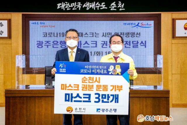 ±¤ÁÖÀºÇàÀº ¼øÃµ½ÃÀÇ ¸¶½ºÅ© ±ÇºÐ ¿îµ¿¿¡ µ¿ÂüÇϰíÀÚ ¼øÃµ½Ãû¿¡ ¸¶½ºÅ© 3¸¸°³¸¦ Àü´ÞÇßÀ¸¸ç, Àü´ÞµÈ ¸¶½ºÅ©´Â ¸¶½ºÅ© Âø¿ë Àǹ«È·Î ±¸ÀÔ ºñ¿ë¿¡ ºÎ´ãÀ» °®´Â ¼øÃµ½Ã¹Î°ú ¼øÃµ½ÃÀÇ ÁÖ¿ä °ü±¤Áö ¹× °ø°øÀå¼Ò, ´ëÁß±³Åë½Ã¼³ µî¿¡ ºñÄ¡ÇÏ¿© Áö¿ª ³» °¨¿° È®»ê ¹æÁö¿¡ »ç¿ëµÉ °èȹÀÌ´Ù.