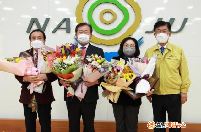 ³ªÁÖ½Ã(½ÃÀå °ÀαÔ)´Â Áö³ 1ÀÏ ½Ãû ´ëȸÀǽǿ¡¼ ¿¸° 12¿ù Á¤·ÊÁ¶È¸¸¦ ÅëÇØ ¼ûÀº ÀÇÀÎÀ¸·Î ¼±Á¤µÈ ½Ã¹Î ±è¼ºÁÖ, ¿ÀÁ¾¼ø, Á¤ÀºÁÖ ¾¾¿¡°Ô ǥâÀåÀ» ¼ö¿©Çß´Ù°í 2ÀÏ ¹àÇû´Ù.