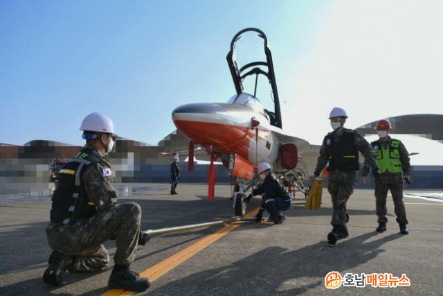 À̳¯ ÈÆ·ÃÀº T-50 Ç×°ø±â°¡ Âø·ú ½Ã ȰÁַθ¦ ÀÌÅ»ÇÏ¿© ÈÀç°¡ ¹ß»ýÇÑ »óȲÀ» °¡Á¤ÇÏ¿© ÀÌ·ç¾îÁ³´Ù. Ç×°ø±âÀÇ ºñ»ó»óȲÀ» Á¢¼öÇÑ °üÁ¦Å¾Àº ¼Ò¹æ ´ë±âÁ¶, Æø¹ß¹° ó¸®Á¶, ±¸±ÞÁ¶ µîÀ¸·Î ±¸¼ºµÈ Áö»ó±¸Á¶¹ÝÀ» ±ä±Þ Ã⵿½ÃÄ×´Ù.
