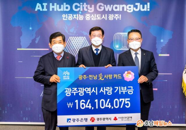 ¿ÃÇØ·Î 3³â° ¡®±¤ÁÖ¡¤Àü³²äñ»ç¶ûÄ«µå¡¯ÀÇ °íÇâ»ç¶û ±âºÎ±ÝÀ» Àü´ÞÇϰí ÀÖ´Â ±¤ÁÖÀºÇàÀº 2018³â¿¡ 1¾ï2õ9¹é¸¸¿ø, 2019³â¿¡ 2¾ï9õ5¹é¸¸¿øÀ» ±¤ÁÖ¡¤Àü³² »çȸº¹Áö°øµ¿¸ð±Ýȸ¿¡ ±âºÎÇß´Ù.