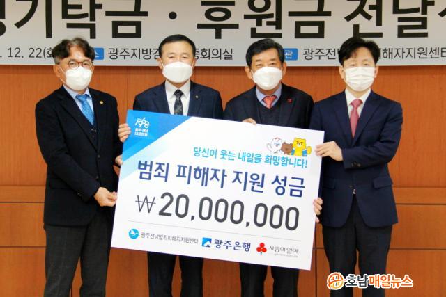 À̹ø ¼º±Ý Àü´Þ½Ä¿¡´Â °íº´ÀÏ ±¤ÁÖÀºÇà ºÎÇàÀå°ú ¿©È¯¼· ±¤ÁÖÁö¹æ°ËÂûû °Ë»çÀå, ÀÌÀº¿ ±¤ÁÖÀü³²¹üÁËÇÇÇØÀÚÁö¿ø¼¾ÅÍ ÀÌ»çÀå, ÇÑ»ó¿ø ±¤ÁÖ»çȸº¹Áö°øµ¿¸ð±ÝȸÀå ¹× °ü°èÀÚ µîÀÌ Âü¼®ÇßÀ¸¸ç, Àü´ÞµÈ ¼º±ÝÀº ±¤ÁÖ»çȸº¹Áö°øµ¿¸ð±Ýȸ¸¦ ÅëÇØ ±¤ÁÖ¡¤Àü³² Áö¿ªÀÇ ¹üÁË ÇÇÇØÀÚ¸¦ À§ÇÑ ÈÄ¿ø±ÝÀ¸·Î »ç¿ëµÉ ¿¹Á¤ÀÌ´Ù.