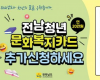 ¡®2023³â Àü³² û³â ¹®Èº¹ÁöÄ«µå Áö¿ø»ç¾÷¡¯Àº Àü¶ó³²µµ¿¡ °ÅÁÖÇϴ û³â(19¼¼~28¼¼)À» ´ë»óÀ¸·Î °ø¿¬ °ü¶÷, Çпø ¼ö°, µµ¼ ±¸¸Å µî ¹®Èº¹Áöºñ¸¦ ¿¬ 20¸¸ ¿ø Áö¿øÇÏ´Â »ç¾÷ÀÌ´Ù. ÇϹݱ⠽Åû ±â°£Àº¡¦ |