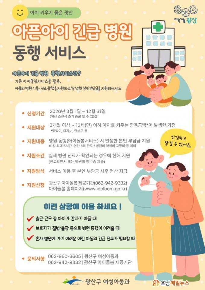 Á÷Àå ¾÷¹«, Áúº´, ÃâÀå µîÀÇ ÀÌÀ¯·Î ¾ÆÀ̸¦ Á÷Á¢ º´¿ø¿¡ µ¥·Á°¥ ¼ö ¾ø´Â ±ä±ÞÇÑ °æ¿ì Àü´ã ¾ÆÀ̵¹º¸¹Ì°¡ ºÎ¸ð ´ë½Å ¾ÆÀÌ¿Í µ¿ÇàÇϸç Áø·á¸¦ µ½´Â´Ù. »ýÈÄ 3°³¿ùºÎÅÍ 12¼¼ ÀÌÇÏ ¾Æµ¿À» µÐ ±¤»ê±¸ °ÅÁÖ °¡Á¤À̶ó¸é ´©±¸³ª ¼ºñ½º¸¦ ½ÅûÇÒ ¼ö ÀÖ´Ù.