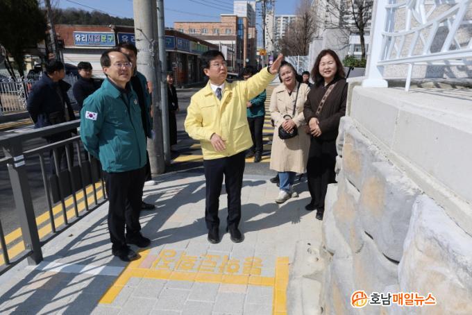±¤»êÁß~¼Û¿ìÃÊ ³²Ãø º¸µµ´Â º¸µµ ÆøÀ» ³ÐÈ÷°í, ¼Û¿ìÃÊ ³²ÃøÀº Çб³ ´ãÀåÀ» ö°ÅÇØ È®º¸ÇÑ ºÎÁö¿¡ Çлý, ÁÖ¹ÎÀÌ ¾ÈÀüÇÏ°Ô ´Ù´Ò ¼ö ÀÖ´Â º¸µµ¸¦ ½Å¼³Çß´Ù.