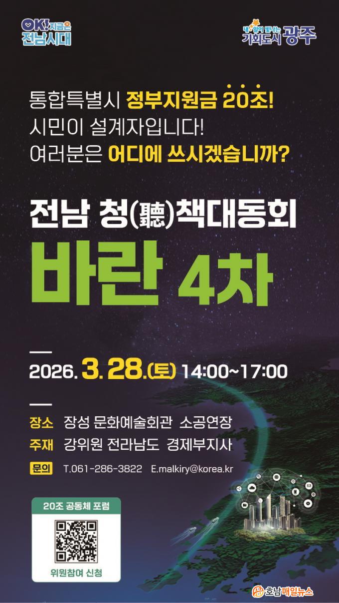 À̹ø ¡®¹Ù¶õ¡¯Àº ¡®20Á¶ ½Ã¹Î°øµ¿Ã¼ Æ÷·³¡¯ÀÇ Ãâ¹ß ½ÅÈ£´Ù. Àü³²µµ´Â Àü³²¡¤±¤ÁÖ ÅëÇÕÆ¯º°½Ã Ãâ¹üÀ» ¾ÕµÎ°í, Á¤ºÎ Áö¿ø 20Á¶ ¿ø ÀçÁ¤ÀÇ È°¿ë ¹æÇâÀ» ½Ã¡¤µµ¹Î°ú ÇÔ²² ³íÀÇÇÏ´Â ¡®20Á¶ ½Ã¹Î°øµ¿Ã¼ Æ÷·³¡¯À» ½ÃÀÛÇÑ´Ù.