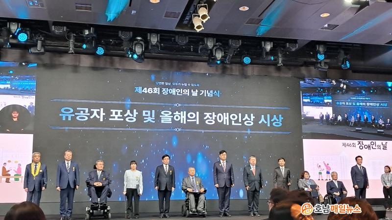 ±¹¹ÎÈÆÀå ¸ð¶õÀåÀº Àü³²Áö¿ª Àå¾ÖÀÎÀÇ º¹Áö ¹ßÀü°ú ±ÇÀÍ º¸È£¸¦ À§ÇÑ ´Ù¾çÇÑ »ç¾÷À» ¹ß±¼ÇÑ °ø·Î·Î ÀÓÈïºó Àü³²µµÀå¾ÖÀδÜüÃÑ¿¬ÇÕȸ ´ëÇ¥°¡ ¼ö»óÇß´Ù. ±èÁ¾Åà Çѱ¹ÁöüÀå¾ÖÀÎÇùȸÀü³²ÇùȸÀåÀº Àå¾ÖÀÎ ±ÇÀÍ ÁõÁø, ³ª´®¹®È È®»ê, Àå¾ÖÀÎ ÀÚ¸³ ±â¹Ý È®»ê °ø·Î·Î ±¹¹ÎÆ÷ÀåÀ», ¹ÚÇö½Ç ¸ñÆ÷Àå¾ÖÀοä¾ç¿ø ÇàÁ¤Áö¿ø°úÀåÀº Àü¹®¼ºÀ» ¹ßÈÖÇÑ ÁßÁõÀå¾Ö¾Æµ¿°ú ÁßÁõ¿Í»óÀå¾ÖÀÎ µ¹º½ °ø·Î·Î ±¹¹ÎÆ÷ÀåÀ» °¢°¢ ¹Þ¾Ò´Ù.