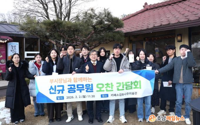 Çà»ç´Â Æí¾ÈÇÑ ºÐÀ§±â ¼Ó¿¡¼ ÀÚÀ¯·Î¿î ´ë´ã°ú ¿ÀÂùÀ» ÇÔ²²ÇÏ´Â Çü½ÄÀ¸·Î ÁøÇàµÆÀ¸¸ç ½Å±Ô°ø¹«¿øµéÀº ¾÷¹« ÀûÀÀ °úÁ¤¿¡¼ÀÇ ¾î·Á¿ò°ú °í¹ÎÀ» ¼ÖÁ÷ÇÏ°Ô ³ª´©°í ºÎ½ÃÀåÀ¸·ÎºÎÅÍ Áø¼ÖÇÑ Á¶¾ð°ú Çö½ÇÀûÀÎ Çǵå¹éÀ» ¹Þ¾Ò´Ù.