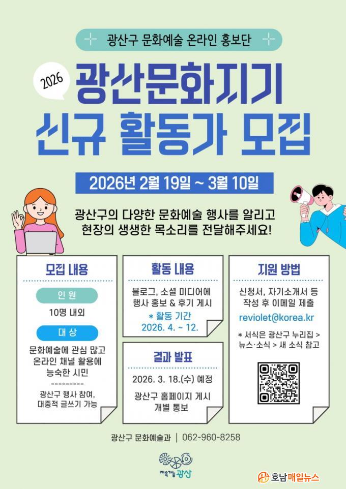 ±¤»ê¹®ÈÁö±â´Â 4¿ùºÎÅÍ 12¿ù±îÁö ¾à 9°³¿ù°£ Ȱµ¿ÇÑ´Ù. ¸ðÁý ÀοøÀº 10¸í ³»¿Ü·Î, ¹®È¿¹¼ú¿¡ °ü½ÉÀÌ ¸¹°í ´©¸®¼ÒÅë¸Á(SNS) Ȱ¿ëÀÌ ´É¼÷ÇÑ ½Ã¹ÎÀ̶ó¸é ´©±¸³ª Âü¿©ÇÒ ¼ö ÀÖ´Ù.