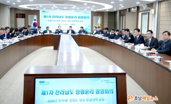 Ȳ±â¿¬ Àü³²µµÁö»ç ±ÇÇÑ´ëÇàÀº ¡°Ã»·Åµµ´Â ƯÁ¤ ºÎ¼ÀÇ ³ë·Â¸¸À¸·Î °³¼±µÉ ¼ö ÀÖ´Â ÁöÇ¥°¡ ¾Æ´Ï¶ó, ÇàÁ¤ ³»ºÎ Á¶Á÷ ¿î¿µ, ¿¹»ê ÁýÇà, ´ë¿Ü °è¾à, ´ë¹Î¼ºñ½º µî Àü ÇàÁ¤ ¿µ¿ª¿¡¼ Á¾ÇÕÀûÀ¸·Î Çü¼ºµÇ´Â °á°ú¡±¶ó¸ç ¡°À̹ø Á¾ÇÕ´ëÃ¥À» Çü½ÄÀÌ ¾Æ´Ñ ½ÇÁ¦ ½ÇÇàÀ¸·Î À̾ Àü ºÎ¼°¡ ÇÔ²² Ã¥ÀÓ°¨À» °¡Áö°í ÃßÁøÇØ´Þ¶ó¡±°í ´çºÎÇß´Ù. ÀÌ¾î ¡°Á÷¿øµéÀÌ Ã¼°¨ÇÏ°í µµ¹ÎÀÌ ½Å·ÚÇÒ Ã»·Å ÇàÁ¤À» ½ÇÇöÇϱâ À§ÇØ °£ºÎ °ø¹«¿øµéÀÌ ¼Ö¼±¼ö¹üÇÒ °Í¡±À» °Á¶Çß´Ù.